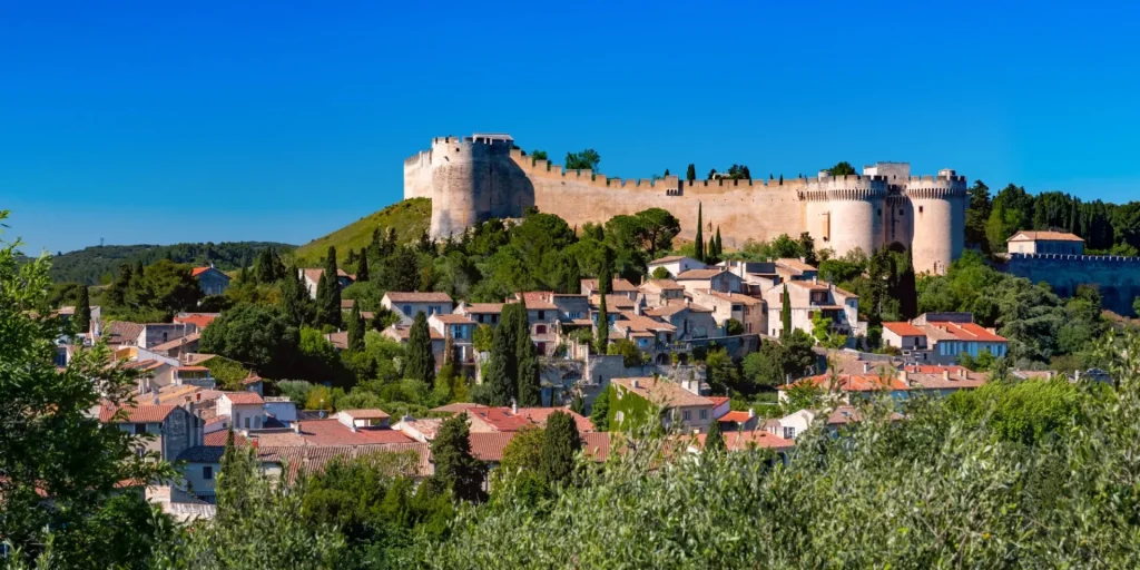 Segeln nach Vallabrèguesein malerisches provenzalisches Dorf. Radeln Sie nach Barbentane's Schlossdie Abtei von Saint Michel de Frigoletund das mittelalterliche Dorf Boulbon.