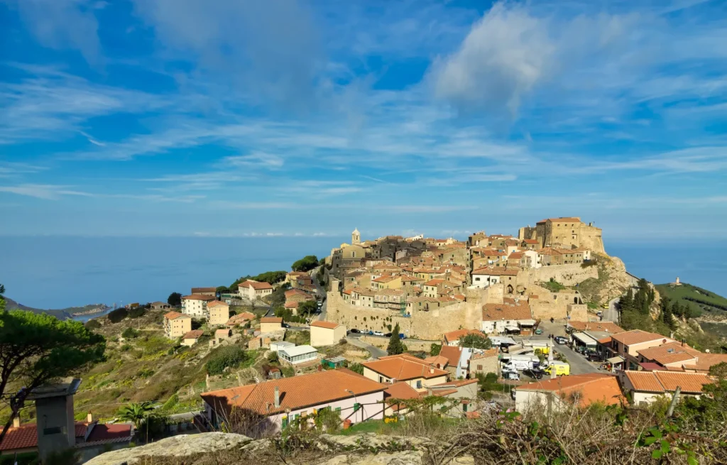 Utforsk middelaldersjarmen i Magliano di Toskana, med sine innbydende porter og gamle murer.
