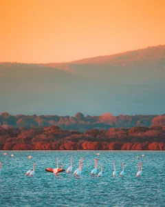 Opplev det naturlige skuespillet med flamingoer i Laguna di Orbetello, et vakkert syn.