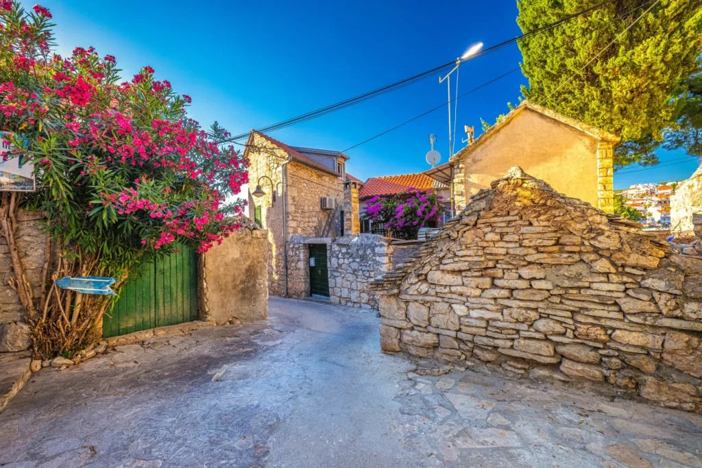 Fietsen door de Dalmatisch achterland leidt tot Skradin. De middag is gereserveerd voor het verkennen van Nationaal Park Krka en zijn watervallen, met een overnachting in Skradin.