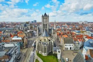 Journey through serene woodlands and pastures, making your way to Ghent. As you approach, the historic charm of Ghent, with its medieval architecture and vibrant street life, welcomes you.