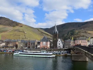 Departing Cochem, our route leads to Beilstein, a well-preserved gem on the Moselle, overshadowed by the ruins of Castle Metternich. After exploring, we tackle the challenging inclines of Bremmer Calmont and conclude our day in Zell, a town celebrated for its “Zeller Schwarze Katz” wine.